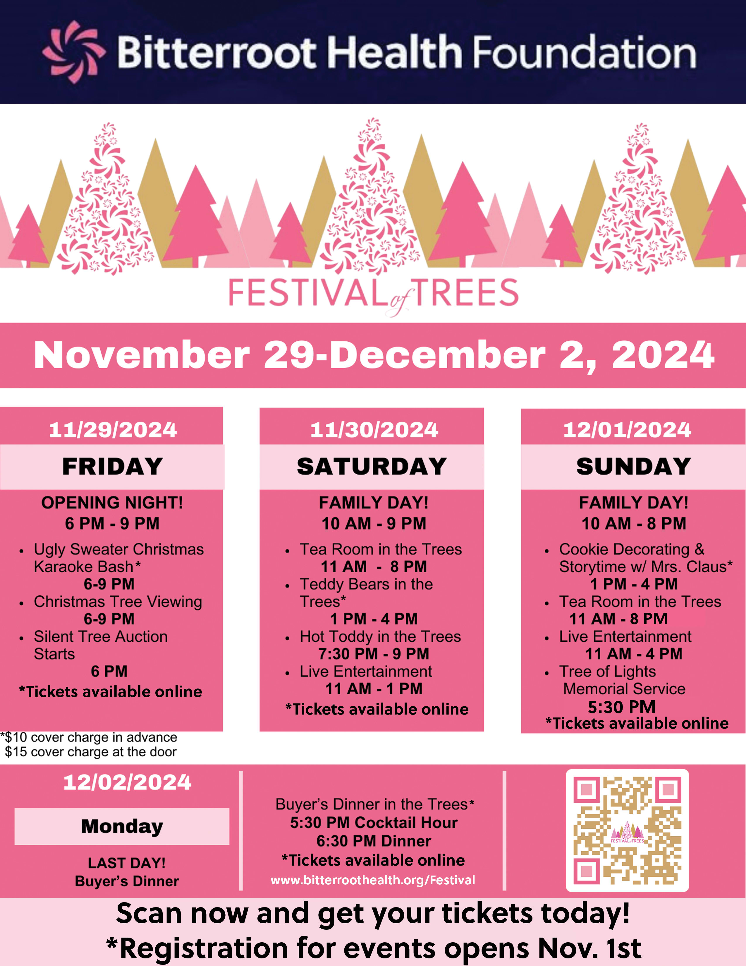 Get into the Christmas spirit while making a difference! This year, the Historic St. Mary’s Mission is proud to be part of Bitterroot Health Foundation Festival of Trees events in Hamilton, celebrating the season and supporting many local nonprofits.